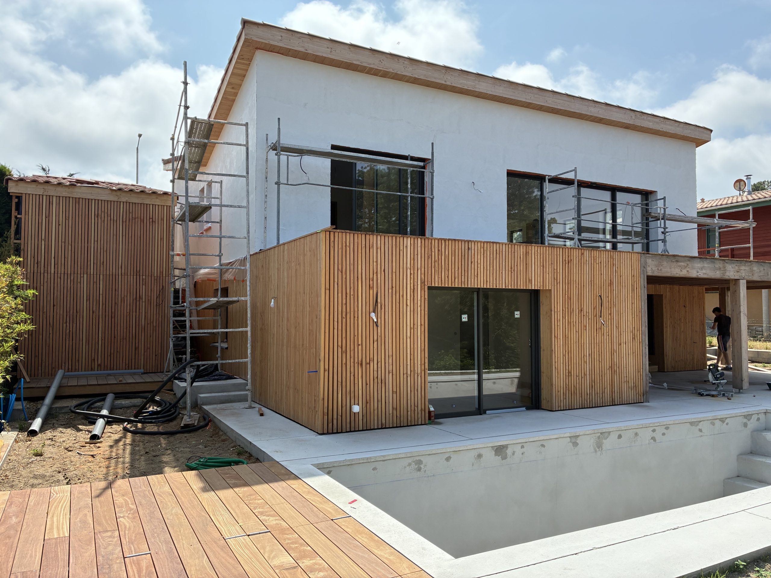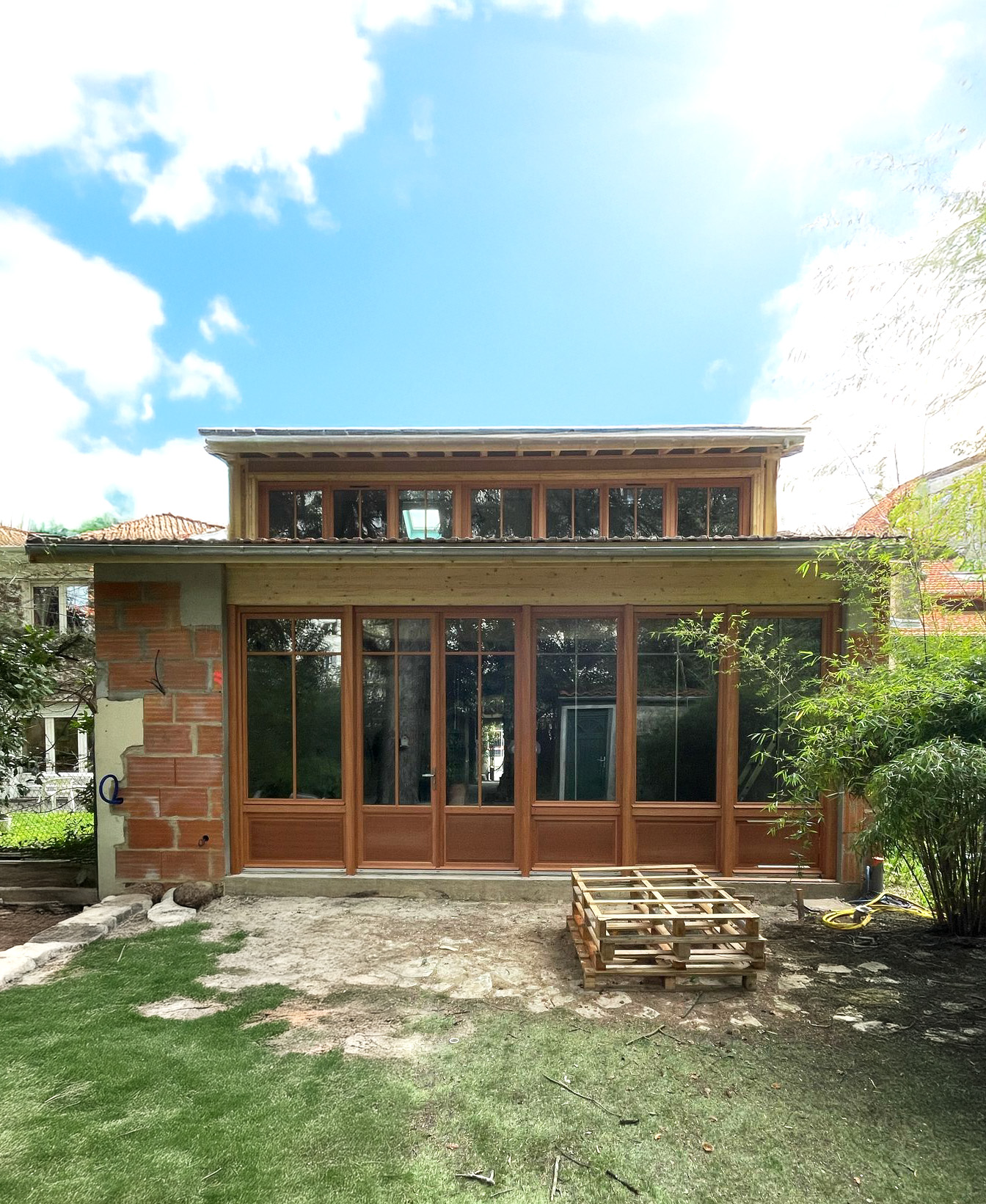 Revoir les volumes et créer un nouvel étage en ossature bois pour ajuster les espaces pour une jeune famille de 4.