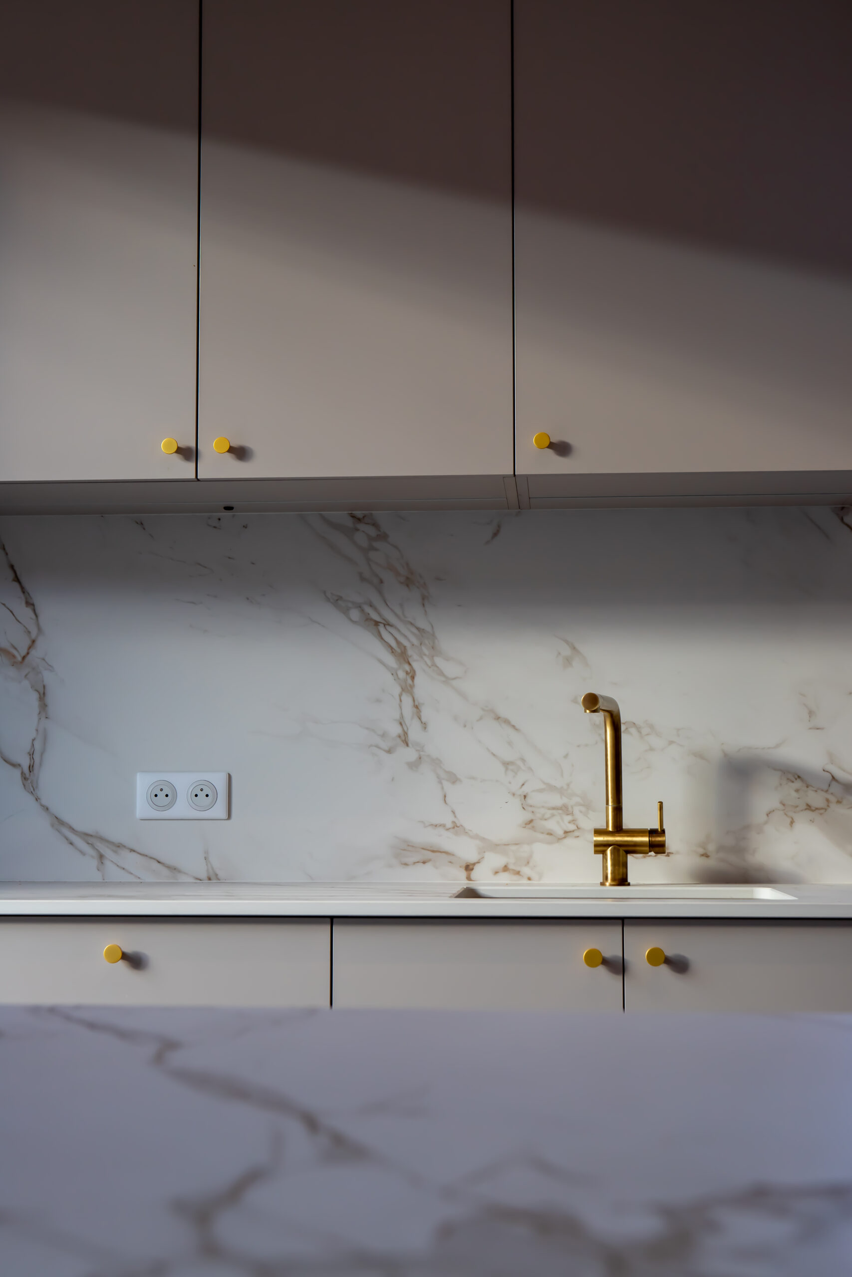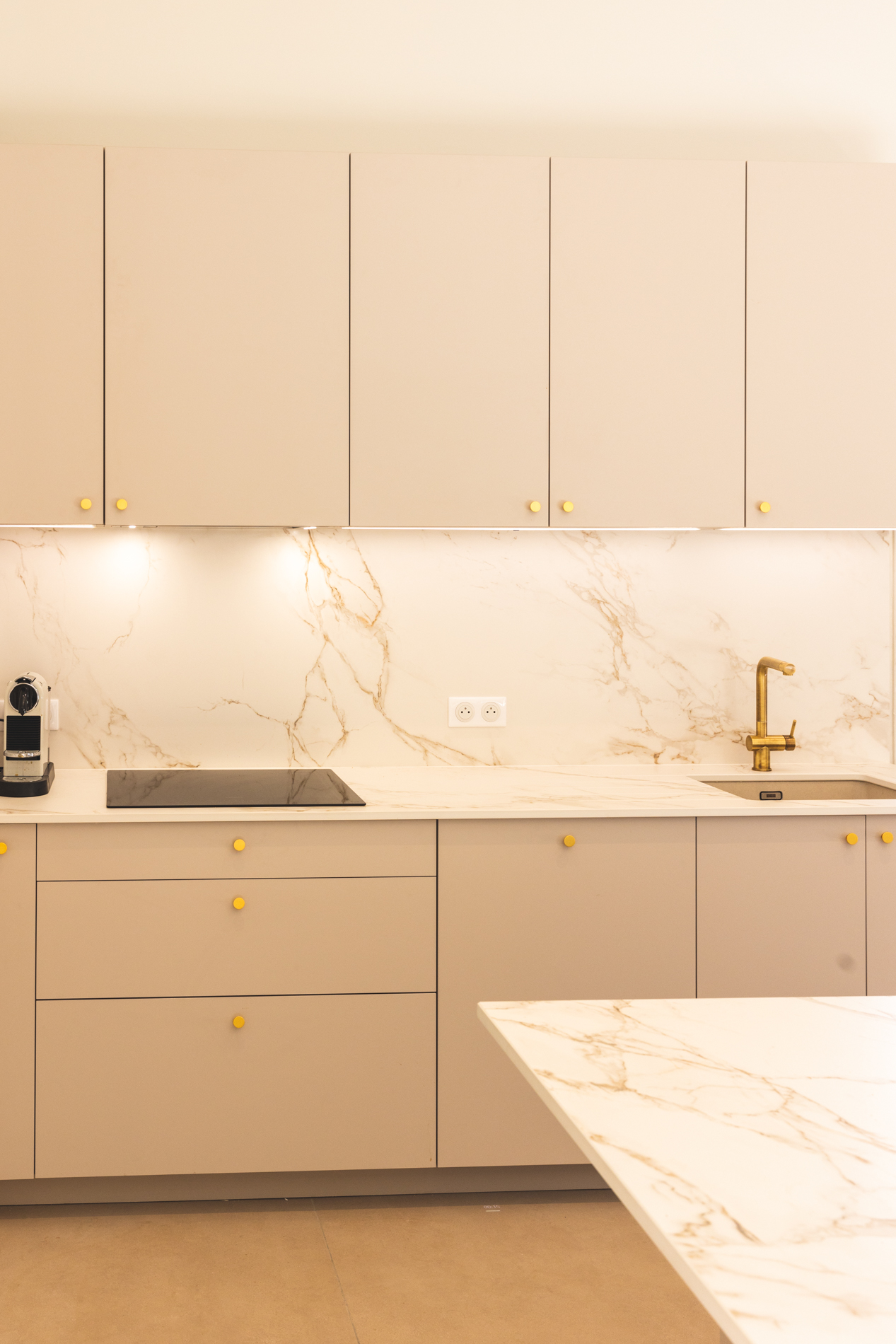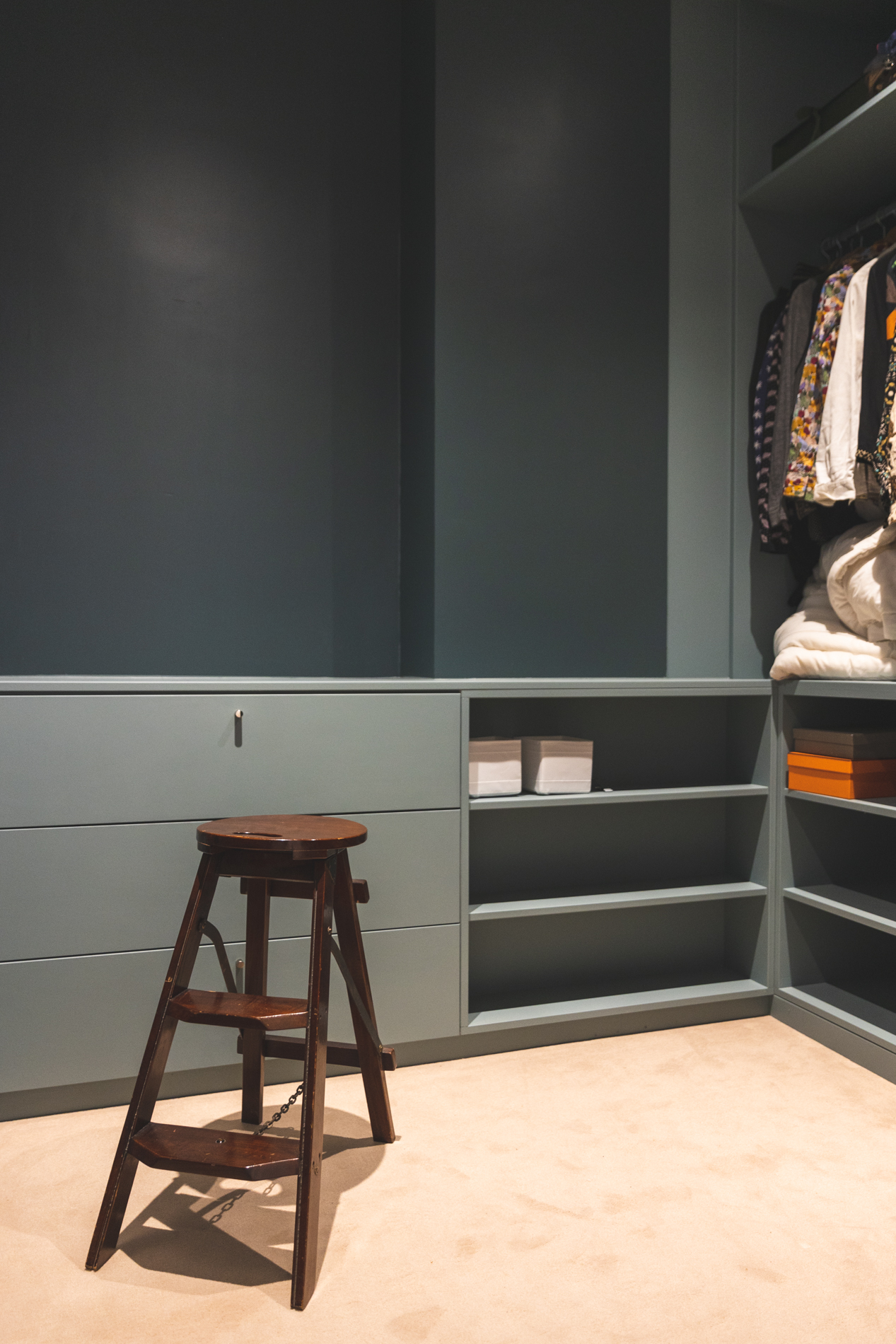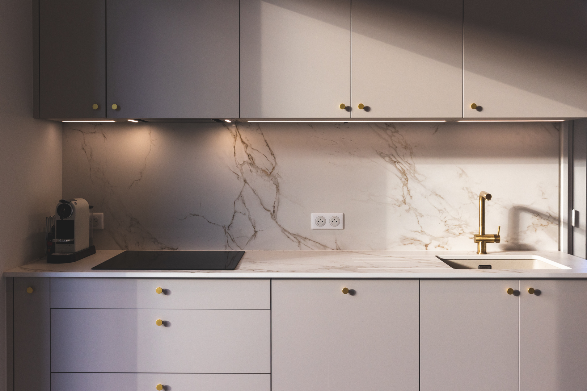 Pour cela, une extension préexistante est supprimée, permettant d’ouvrir largement la façade. Le séjour décloisonné devient un véritable lieu de vie. Les éléments de mobiliers structurent l’espace s’anime au rythme de la lumière qui entre par les baies.