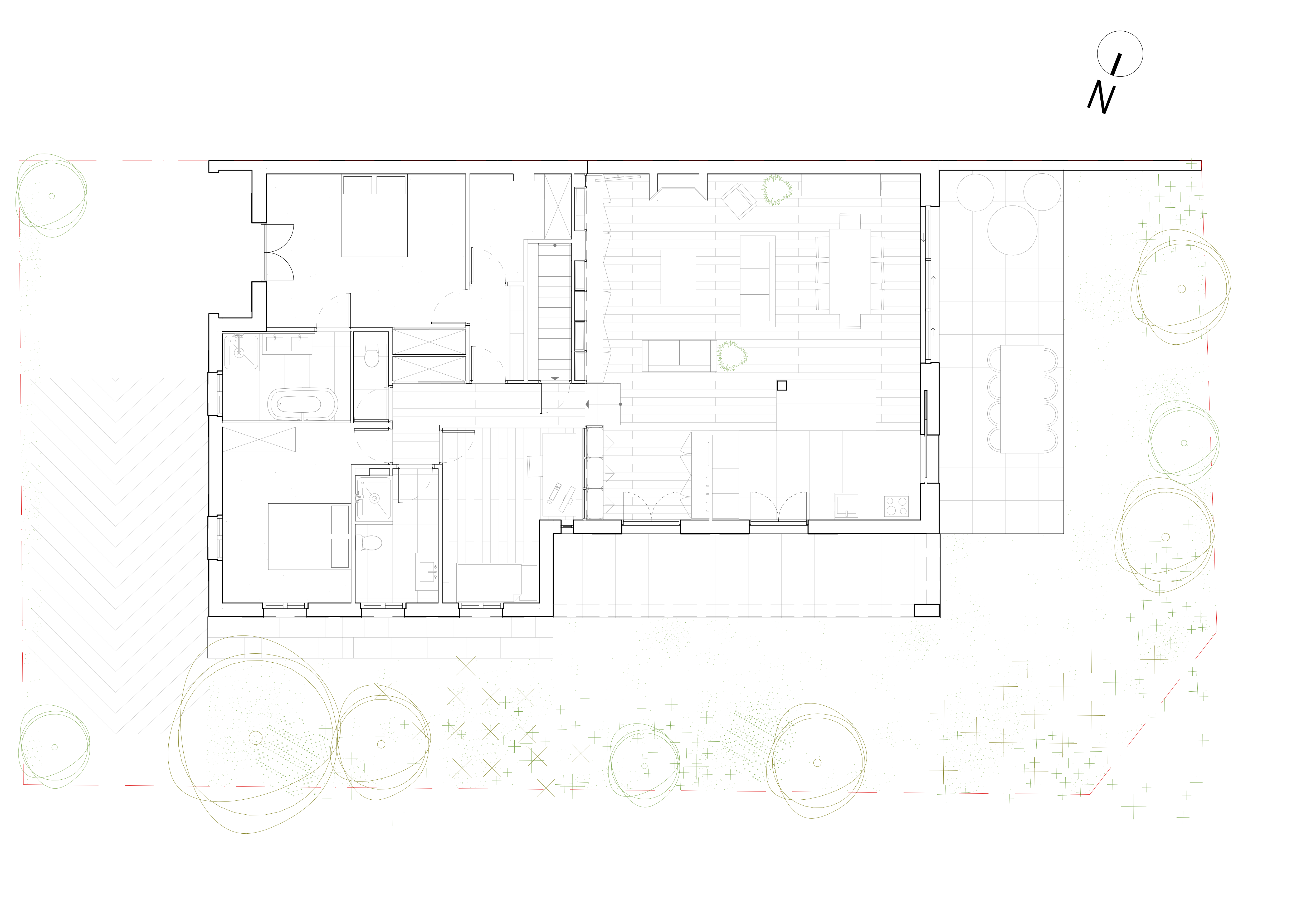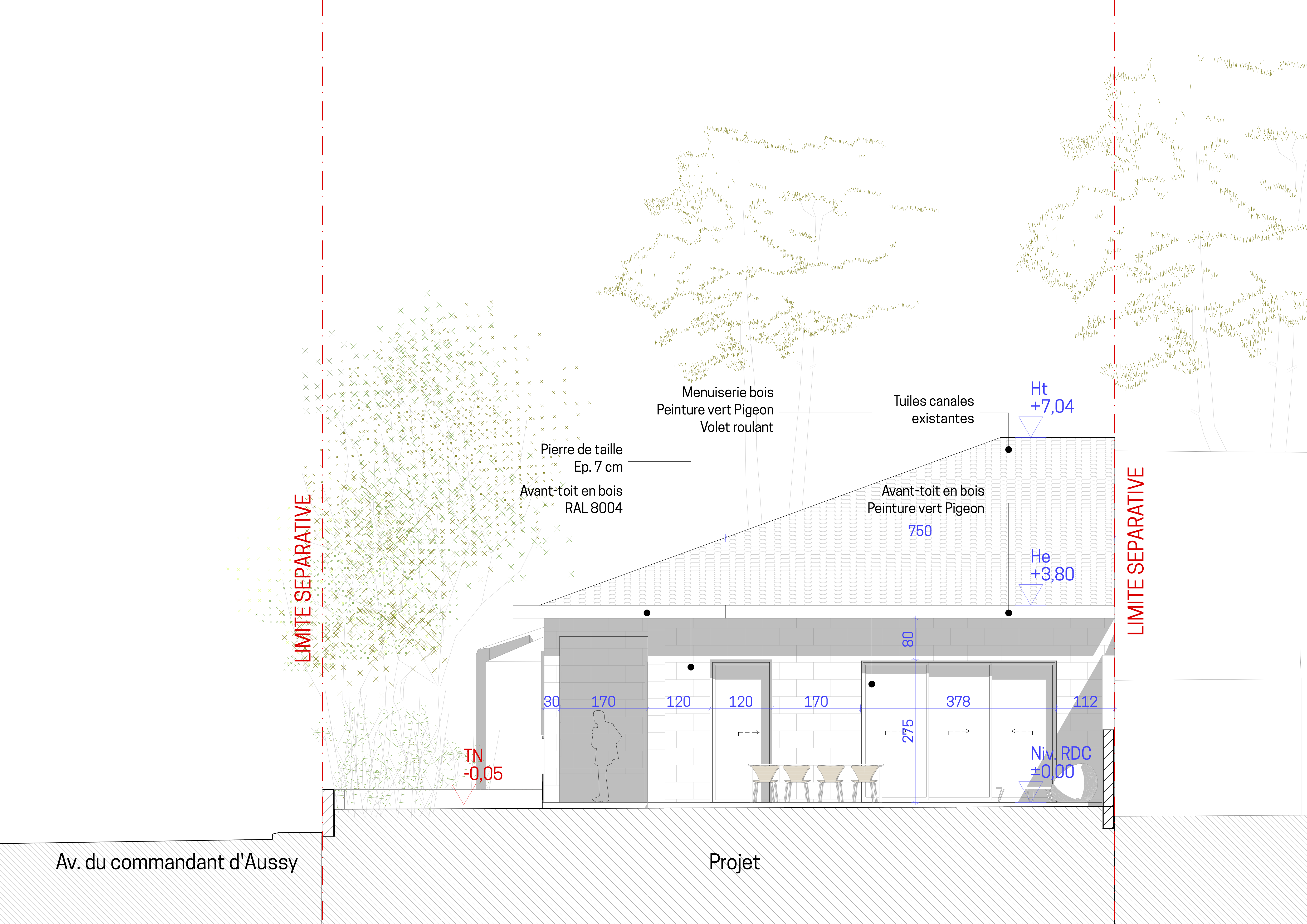 Situé dans le quartier du Bouscat, le projet consiste à réorienter le séjour de cette maison de ville vers son jardin.