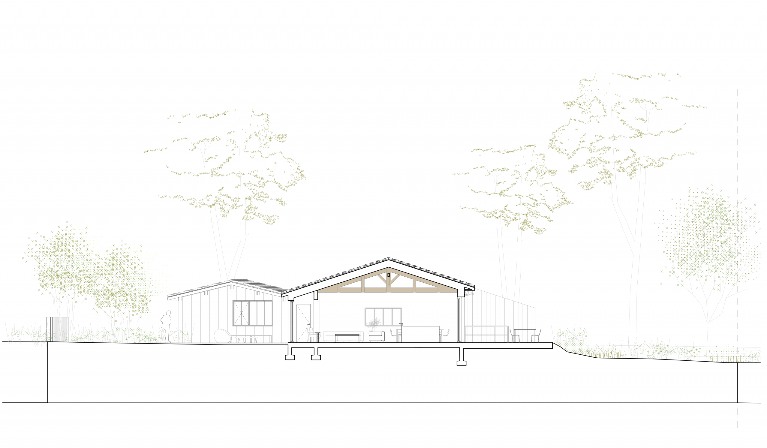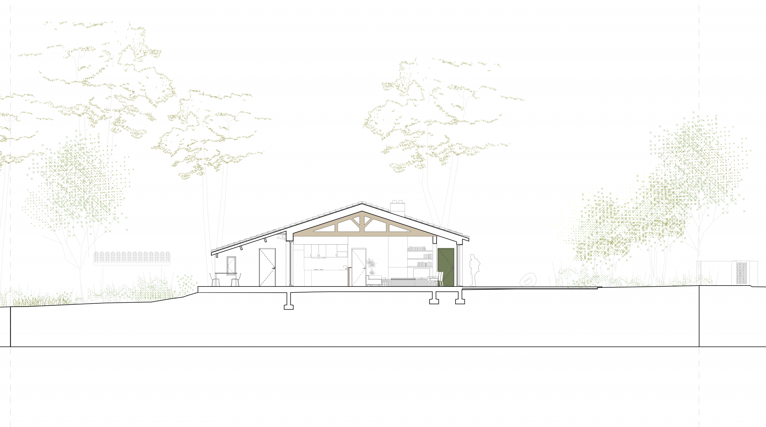 Les ouvertures du séjour ont été agrandies au maximum afin de profiter pleinement de l’espace vert au Nord et du soleil au Sud.