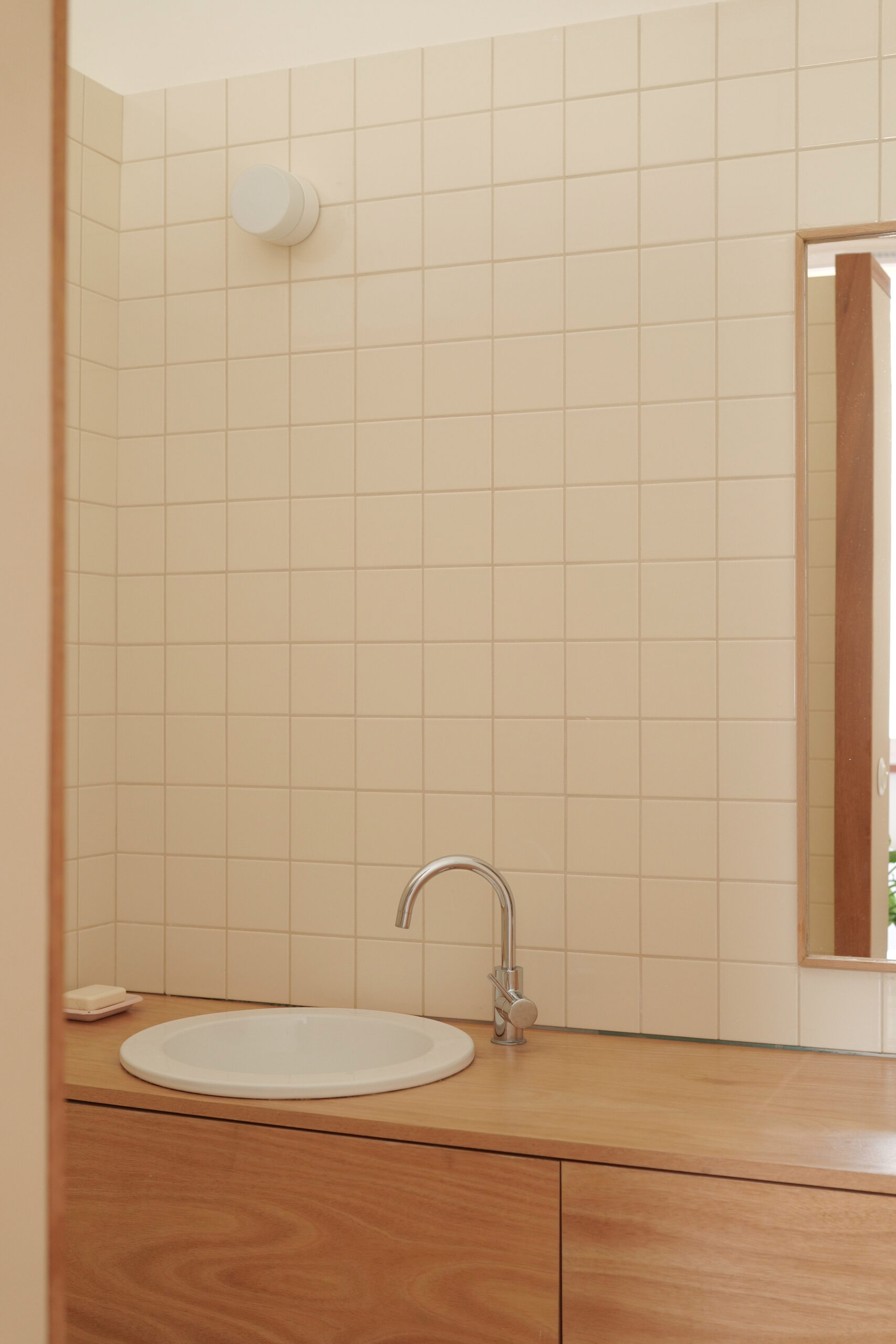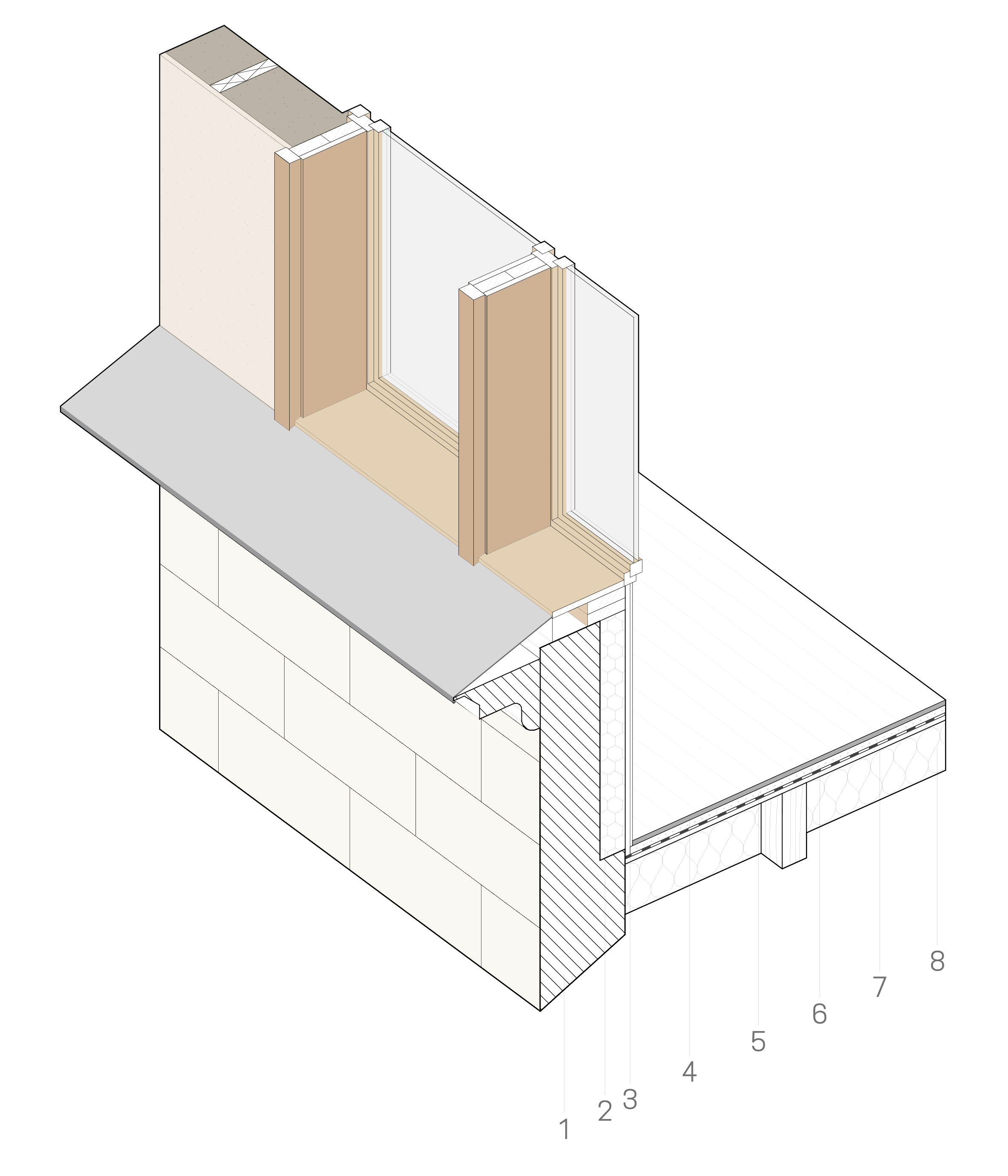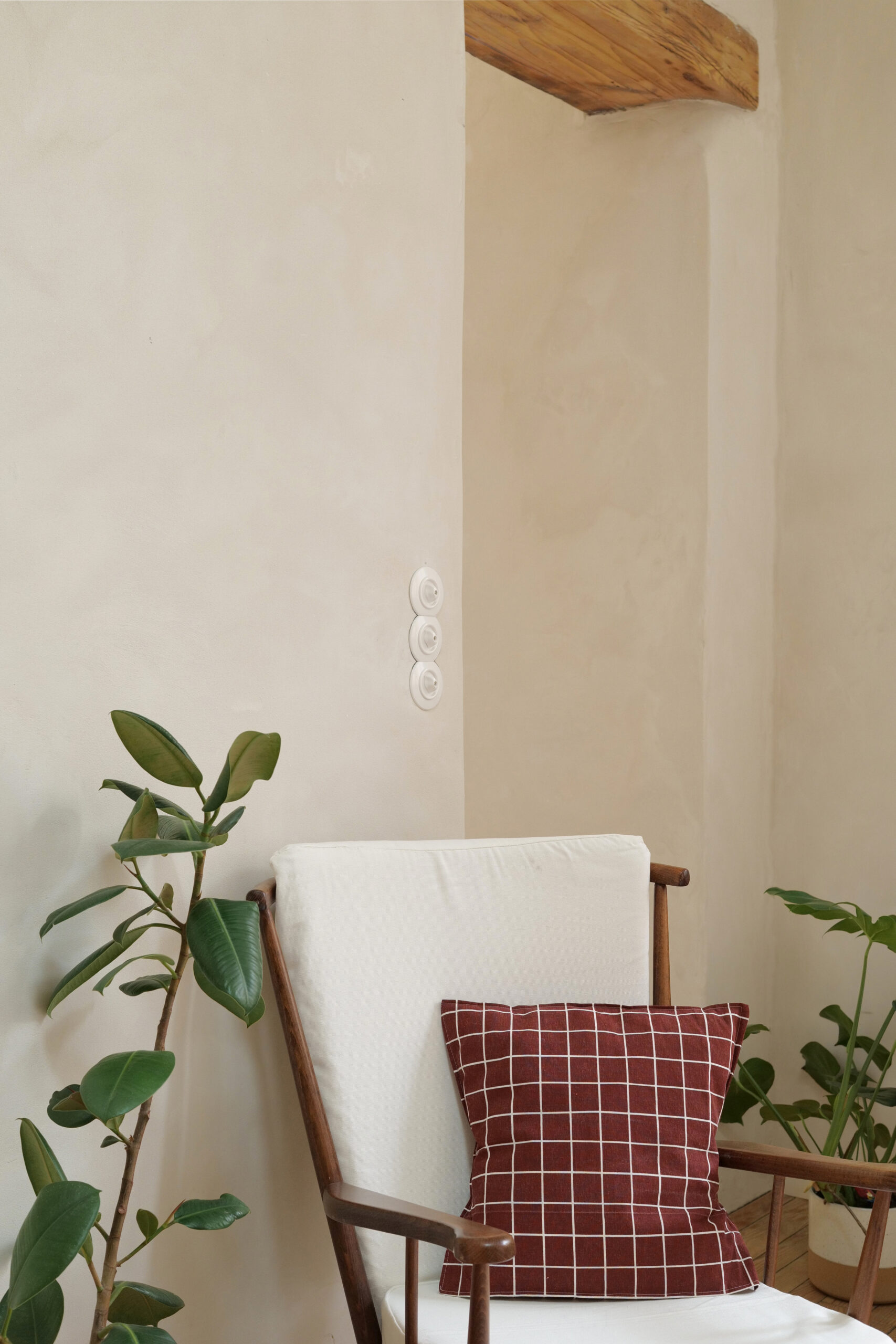 La surélévation est construite en double ossature bois, remplie de chaux-chanvre sur 28 cm d’épaisseur. L’ensemble est enduit à la chaux à l’intérieur et à l’extérieur. Ces matériaux naturels participent à l’équilibre thermique et hygrométrique du logement.