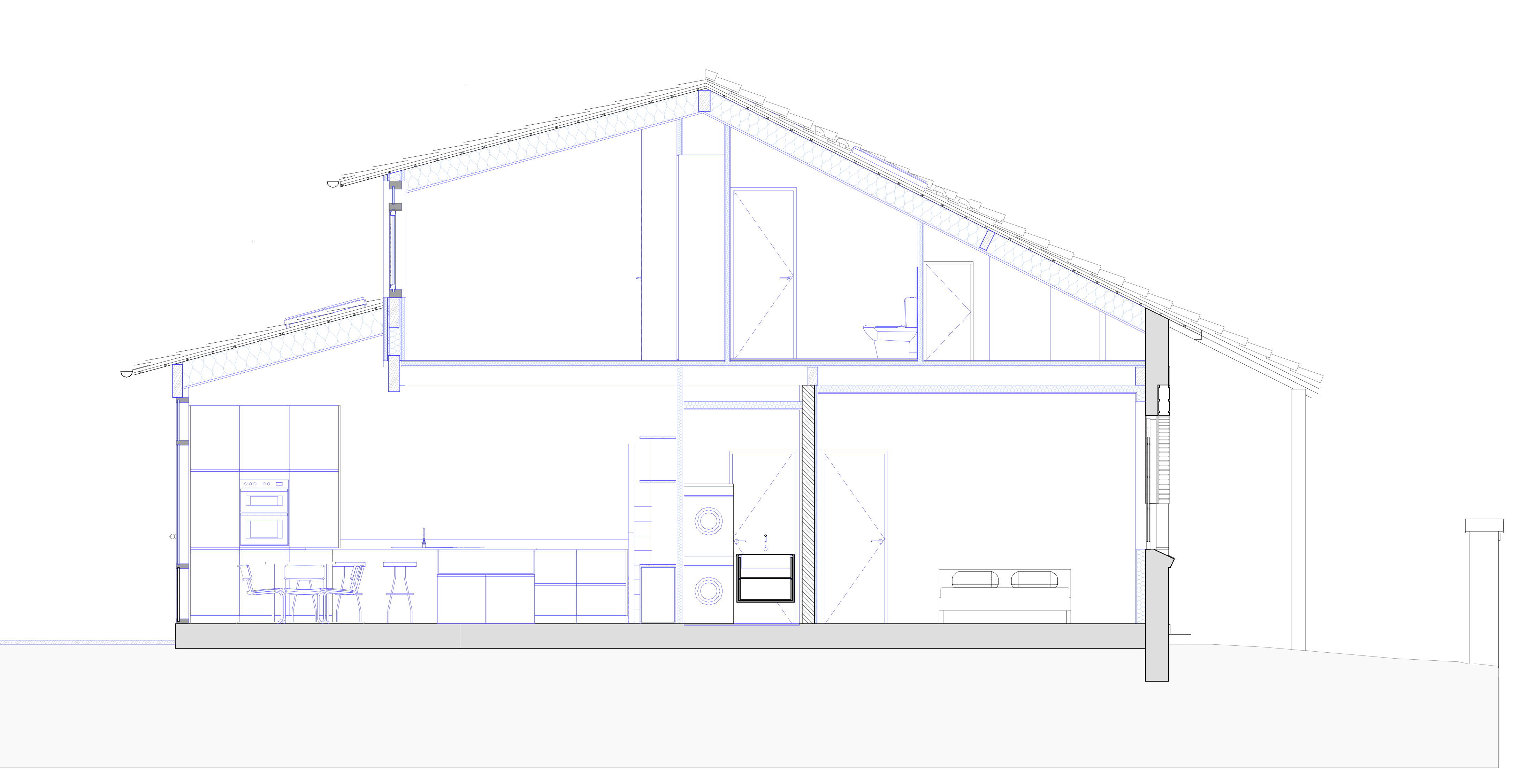 Le projet de surélévation a été réfléchi en bioclimatique avec une surélévation en ossature bois, une isolation en laine de bois et une finition extérieure en enduit à la chaux. Les parois de la surélévation sont donc entièrement perspirantes. Les ouvertures sont faites coté Est pour apporter de la luminosité mais éviter la surchauffe.