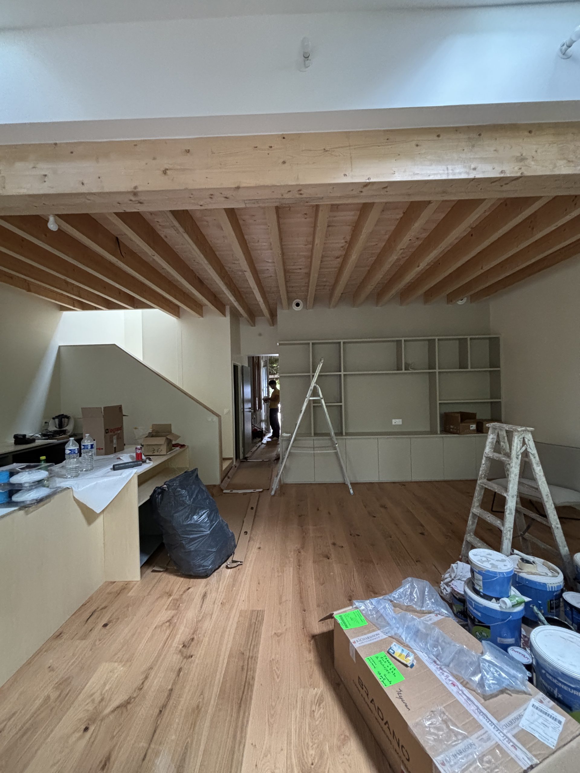 Le projet vise à créer des volumes lumineux, ouverts et traversants, en rupture avec l’état initial très compartimenté et sombre. Le nouvel étage, dédié aux enfants, offre des espaces généreux et fonctionnels, adaptés à leur quotidien.